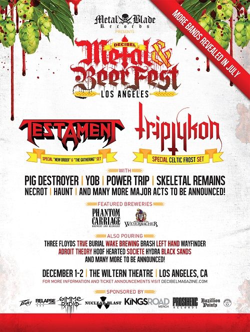 Triptykon will perform at the first ever Decibel Metal & BeerFest: Los Angeles to be held December 1st and 2nd, 2018, at the historic Wiltern Theatre.