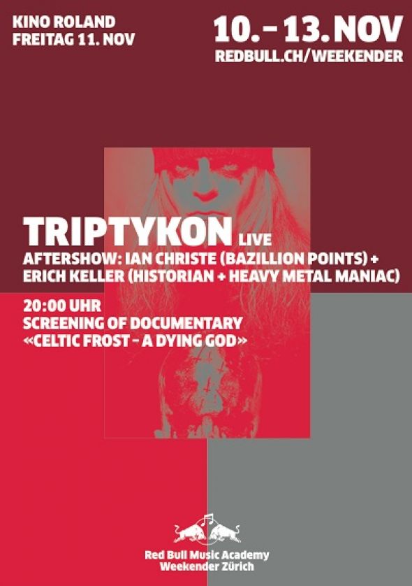 Triptykon’s special, intimate concert in Zurich, Switzerland, tonigh, November 11, 2016, as part of the Red Bull Music Academy is SOLD OUT. The concert will take place at the Roland cinema, a unique and somewhat notorious venue that will be converted into a small club for Triptykon’s performance.