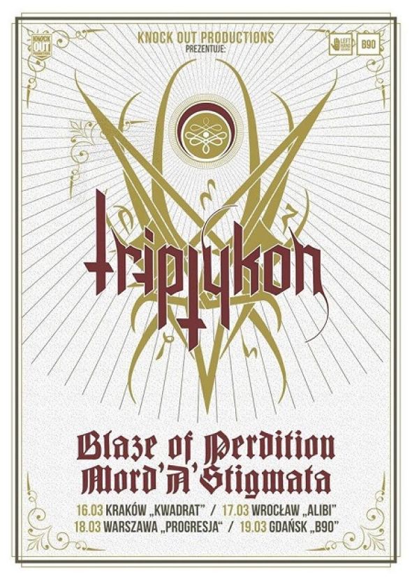 Triptykon are pleased to announce that we will play four concerts in Poland in March of 2017 along with Blaze of Perdition and Mord’A’Stigmata: